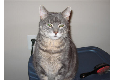 He is an adult cat, neutered and de-clawed. He weighs nearly 20